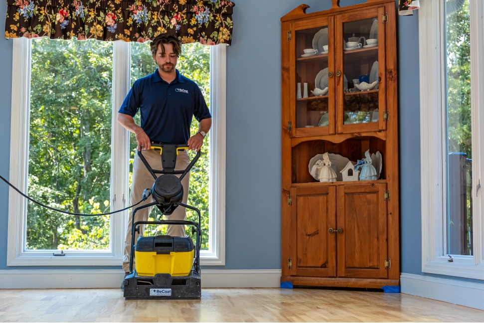 If your floors look worn, dull, or uneven but don’t need a full refinish, ReCoat Revolution offers a smarter, faster, and cleaner solution.